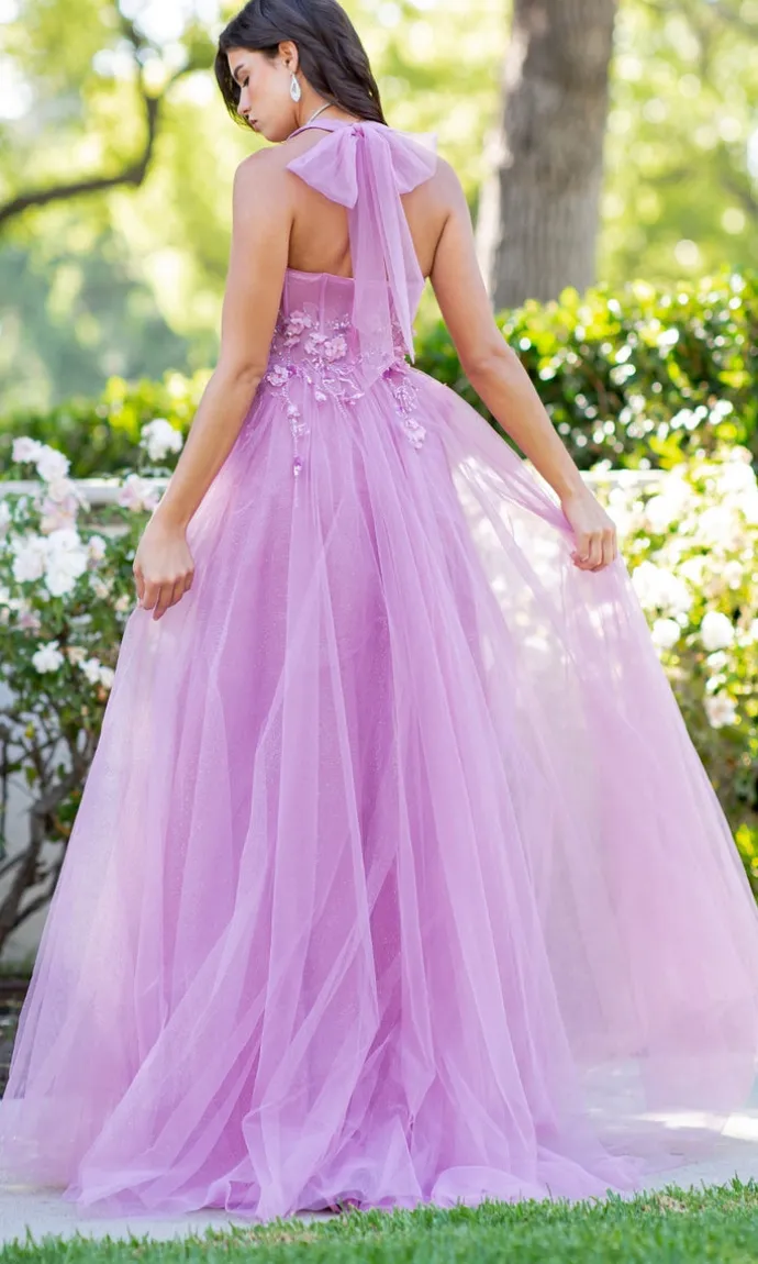 Feel like a true princess in this stunning Cinderella Couture Long Formal Dress 8076j. The beautiful ball gown boasts a flattering halter neck and lovely sweetheart neckline, with a touch of whimsy and elegance added by the 3D floral applique. Its breezy tulle fabric and classic a-line silhouette make it the perfect choice for any special occasion.