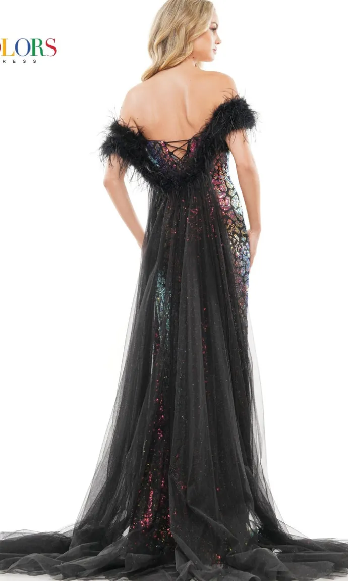 This strapless sweetheart dress features elegant sequins and a removable feather trim cape. Perfect for any special occasion, add a touch of luxury and exclusivity to your wardrobe with this stunning dress.