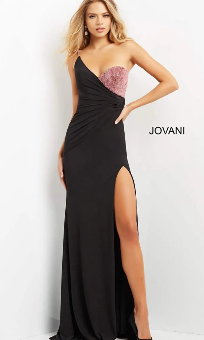 This elegant Formal Long Dress by Jovani will make you feel confident and beautiful. The long fitted silhouette flatters your figure, while the asymmetric beaded sweetheart bust adds a touch of sparkle. The open back adds a touch of allure to the design. Perfect for any formal occasion.