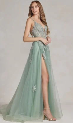 Long A-Line Lace Prom Dress with Wrap-Style Skirt
