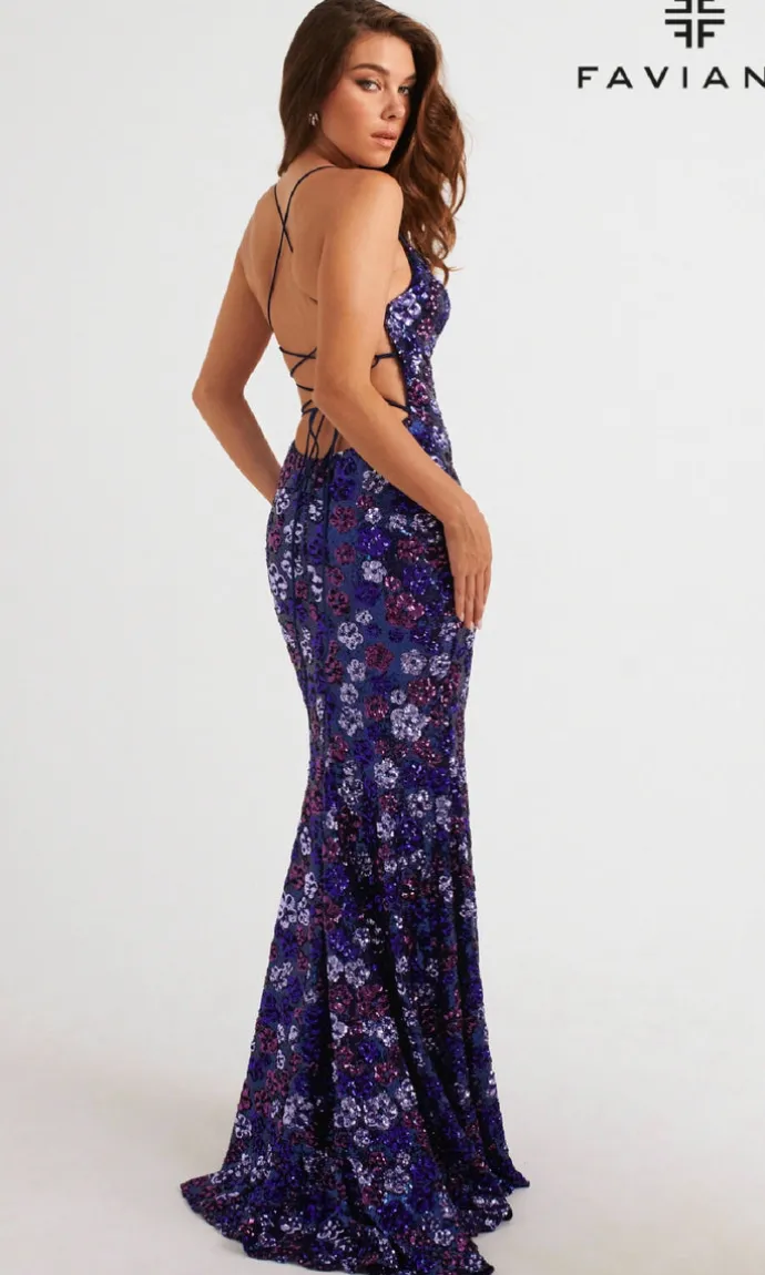 Let your inner beauty shine through with Faviana’s Long Formal Dress 11000. This dazzling dress is adorned with sequins and stunning multi-colored flowers, creating a feminine and fun look for prom, galas, and black-tie events. The open back and dramatic skirt add a touch of glamour to showcase your curves. Available in misses and plus sizes, this designer dress is ready to make you feel confident and radiant!